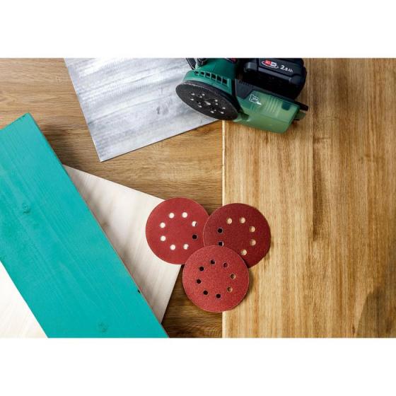 Klettverschlusssystem für sicheren Halt und schnellen Blattwechsel Kompatibel mit Exzenterschleifern der meisten Elektrowerkzeugmarken Merkmale: passend für: Exzenterschleifer Papierbefestigung: Klettverschluss Körnung: 80 (mittel), 120 (fein), 240 (sehr fein) Größe: Ø 125 mm weitere Produktinformationen: geeignet für: Holz, Metall, Lack, Spachtel Verpackungsinhalt: 25 Blatt Farbe: rot Lieferung: inkl. 25 Schleifscheiben (5x Körnung 80, 10x Körnung 120, 10x Körnung 240)