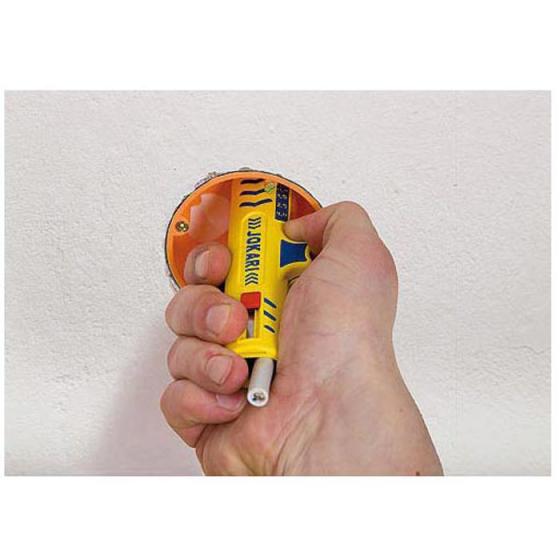 Geeignet für Stromkabel mit einem Kabeldurchmesser von 8 – 13 mm Längsschnitt schnell & einfach durch Kabelführung im Gehäuse Kein Verstopfen der Klingen durch Kabelreste möglich Verriegelungstechnik verhindert unkontrollierte Öffnen des Werkzeuges Einstellung der Klingen auf die Schnitttiefe nicht erforderlich Schiebeklinge Titan-Nitrid beschichtet und rutschsichere Griffzone Merkmale: geeignet für: Stromkabel weitere Produktinformationen: Stromkabel Ø: 8 – 13 mm Kabelquerschnitte: 0,2 – 4,0 mm² Länge: 124 mm Made in Germany sonstiges: zum Abmanteln und Abisolieren aller gängigen Rund- und Feuchtraum-Kabel, Befestigungsclip zur sicheren Aufbewahrung