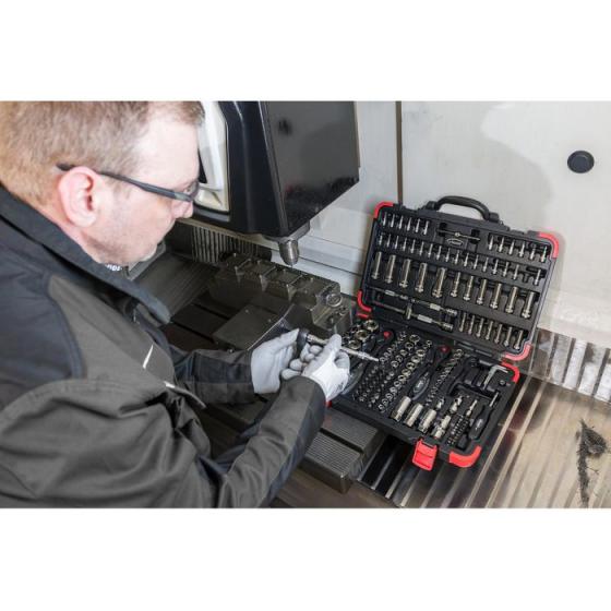 Mit Umschaltknarren, Verlängerungen & Schraubendreher-Einsätze Steckschlüssel Satz Vierkant – 1/4, 3/8 und 1/2 Zoll Antrieb Vierkant 6,3 mm (1/4 Zoll), 10 mm (3/8 Zoll), 12,5 mm (1/2 Zoll) Robuster und übersichtlicher Kunststoffkasten Für Handbetätigung geeignet Merkmale: Werkzeugaufnahme: 1/4 Zoll, 1/2 Zoll, 3/8 Zoll Schlüsselweite: E-Profil, 4 mm, 4,5 mm, 5 mm, 5,5 mm, 6 mm, 7 mm, 8 mm, 9 mm, 10 mm, 11 mm, 12 mm, 13 mm, 14 mm, 15 mm, 16 mm, 17 mm, 18 mm, 19 mm, 20 mm, 21 mm, 22 mm, 24 mm, 27 mm, 30 mm, 32mm weitere Produktinformationen: Länge Steckschlüssel: 24,8 mm, 25 mm, 28 mm, 38 mm, 50 mm, 63 mm, 77 mm Schlüsselweite Vierkant 1/4 Zoll E-Torx: E4 / E5 / E6 / E7 / E8 Schlüsselweite Vierkant 1/2 Zoll E-Torx: E20 / E22 Schlüsselweite Vierkant 3/8 Zoll E-Torx: E10 / E11 / E12 / E14 / E16 / E18 Schlüsselweite Vierkant 1/4 Zoll: 4 / 4,5 / 5 / 5,5 / 6 / 7 / 8 / 9 / 10 / 11 / 12 / 13 / 14 Schlüsselweite Vierkant 1/4 Zoll, lang: 4 / 5 / 6 / 7 / 8 / 9 / 10 Schlüsselweite Vierkant 1/2 Zoll: 10 / 11 / 12 / 13 / 14 / 15 / 16 / 17 / 18 / 19 / 20 / 21 / 22 / 24 / 27 / 30 / 32mm Schlüsselweite Vierkant 1/2 Zoll, lang: 16 / 17 / 18 / 19 / 22 Schlüsselweite Vierkant 3/8 Zoll: 10 / 11 / 12 / 13 / 14 / 15 / 16 / 17 / 18 / 19mm Schlüsselweite Vierkant 3/8 Zoll, lang: 10 / 11 / 12 / 13 / 14 / 15mm Maße: (LxBxH) 46 x 25,5 x 8,5 cm Gewicht: 9,7 kg Lieferung: inkl. 172 Teile (Feinzahn-Umschaltknarren, Schraubendreher-Einsätze, Steckschlüsseleinsätze, Adapter, Gleitgriff, Steckgriff, Universalgelenk, Verlängerungen, Winkelschraubendreher) sonstiges: Abtrieb Außen TORX Profil, Außen-Sechskant Profil, Innen Keilprofil Ribe-CV, Innen TORX Profil, Innen Vielzahn Profil XZN, Innen-Sechskant Profil, Kreuzschlitz Profil PH, Pozidriv Profil PZ, Schlitz Profil, Tamper Resistant TORX Profil